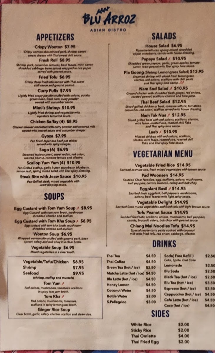 Crispy wonton skin minced pork, shrimp, carrot, cream cheese with Thai sweet chili sauce.